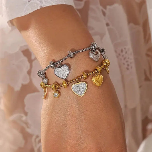 Amorous Orbit Heart–Moon Bracelet